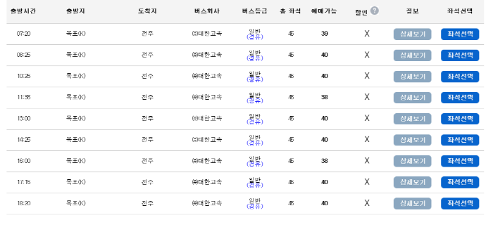 번외로 목포-전주-강진의 버스 시간표도 함께 올려본다.